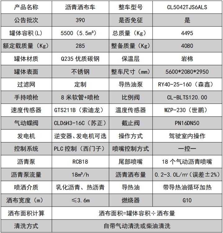 ??????湖北程力汽車:程力CL5042TJS6ALS福田領(lǐng)航 5.5 方藍牌智能瀝青灑布車產(chǎn)品型號及參數(shù)配置,程力CL5042TJS6ALS福田領(lǐng)航 5.5 方藍牌智能瀝青灑布車高清圖片,程力汽車系列程力CL5042TJS6ALS福田領(lǐng)航 5.5 方藍牌智能瀝青灑布車最新報價請撥打客服熱線。整車技術(shù)參數(shù) 產(chǎn)品商標 程力牌 公告批次 390 產(chǎn)品名稱 水泥凈漿灑布車 產(chǎn)品型號 CL5042TJS6ALS 總質(zhì)量(Kg) 4495 罐體容積(m3) 額定載質(zhì)量(Kg) 285,220 外形尺寸(mm) 5600 × 2080 × 2950 整備質(zhì)量(Kg) 4080 貨廂...