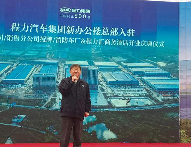 在程力集團(tuán)新廠辦公大樓總部入駐慶典會(huì)上,集團(tuán)總經(jīng)理程阿羅為程力消防車公司總經(jīng)理汪東洋,舉行了消防器材廠開業(yè)授牌儀式,汪東洋總經(jīng)理作了表態(tài)和發(fā)言。