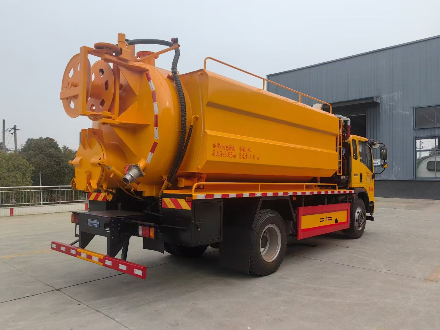 | 上裝配置 | 吸污罐容積約11立方,清水箱約3.5立方,污水罐8mm制作,清水箱4mm制作,采用品孚255流量高壓泵,帶60米22號(hào)高壓管,液壓卷盤(pán)。 污水罐約11立方:375副發(fā)SK-30水循環(huán)泵,水循環(huán)泵水箱為碳鋼材質(zhì),頂部防溢閥,后門(mén)處150球閥排污,100球閥直通罐頂吸污,作業(yè)適用場(chǎng)景最廣泛工作最高效! | ||