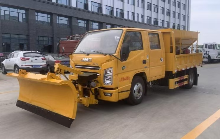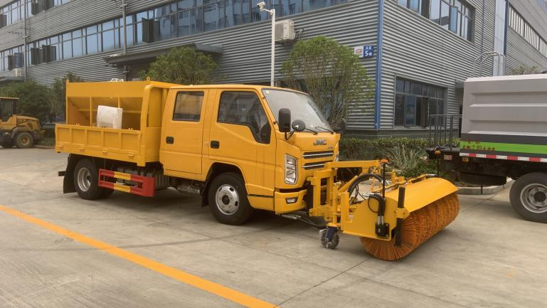 | 上裝配置 | 箱體尺寸2600*2060*400mm,箱體內裝 3立方融雪撒布機,撒布機采用 V 型料倉,結構簡單可靠,使融雪劑自動落料,出料完全,無殘留。駕駛室可加裝2米除雪鏟或者2米除雪滾。 | ||